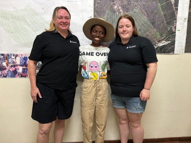 We got a warm welcome from Carlos Paiva and met the team we would be spending time with over the next two days in their lovely air conditioned meeting room. We also got to meet some of the wonderful students who are sponsored by our dear customer Unicorn Grocery in conjunction with True Origin Partnerships, as they come to the end of their 3 month training course through the Tunnel Project, before the next cohort of around 20 students starting in October. Each of the students we spoke to told their own story of how the Woman Farmer Foundation has helped them turn the theory of what they had learned at university into practise by actually getting taught practical farming methods and having their own piece of land to cultivate using the Tunnels. These tunnels are particularly valuable as they allow the farmer to control the growing environment for the crops as the weather is unpredictable now due to climate change. We saw the difference these tunnels make as the tomato plants were almost 6ft tall whereas the ones in the open field without the protection were only around 2-3 ft tall. The weekend before we arrived in Eswatini, they had really bad hail storms and temperatures of around 15 degrees, and then a few days later it was bright sunshine and 41 degrees.