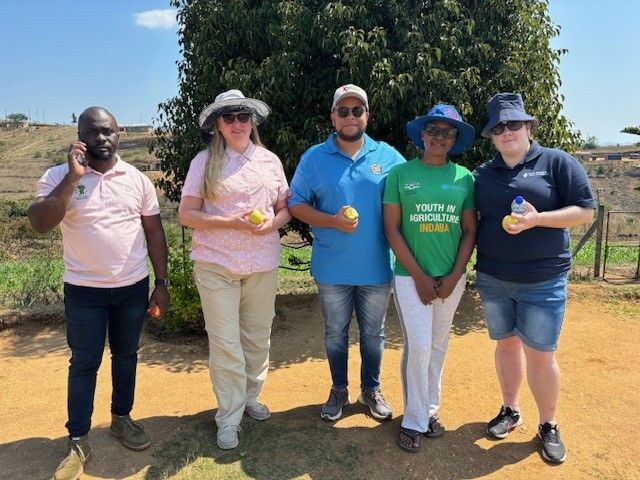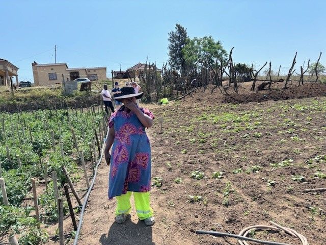 The last visit of the day was with Nomsa Dvuba who is a former finalist in the Woman Farmer of the Year Competition and this was evident when we saw the size and quality of her farm. You can see immediately the methods taught by the experts at the Woman Farmer Foundation training in clear view such as a board at the start of each new crop stating the crop, the date it was planted and the number of seedlings planted and using stakes to encourage the crops to grow upwards. It was clear that Nomsa has grown her farm gradually over the years and she is now very active in her community helping and advising other woman and young farmers. She is hopeful that she will be a finalist again in this years competition.