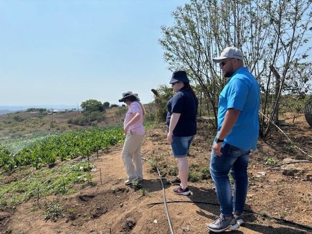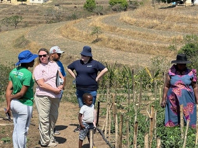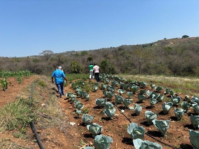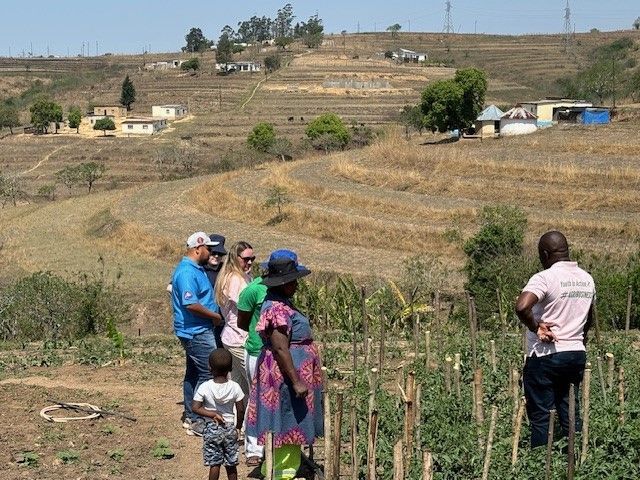 This morning we made up way up to the Eswatini hills to visit three farmers who are part of the Woman Farmer Foundation. We drove up dirt tracks and quite often ‘off the beaten track’ for quite some time in order to reach the first farm. However, we did get beautiful views of the surrounding countryside and sometimes had to wait until the cows and goats finished crossing the road before we could pass.