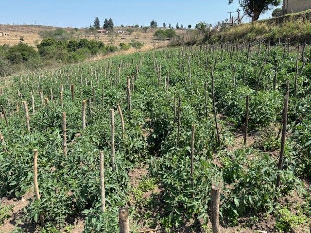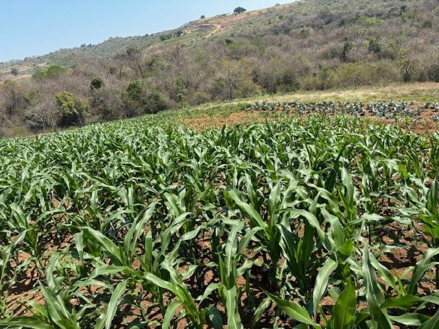 We arrived at the first farm belonging to Nomfundo Vilakati. She was proud to show us her fields and talk about the crops she has grown and how she uses her chicken manure for fertiliser so everything is entirely organic and natural. She has been struggling with getting water to her farm to irrigate her fields as she is quite high up on the hills and the river is below and she cannot afford a pump to pump the water from the river up the hill to her farm. At the moment she is trying to capture any run off water from further up the hill but struggles when the weather has been dry for a while. This means that she has had to rent a piece of land in another part of Eswatini that she is farming as well to ensure that she has a harvest and has crops to sell.