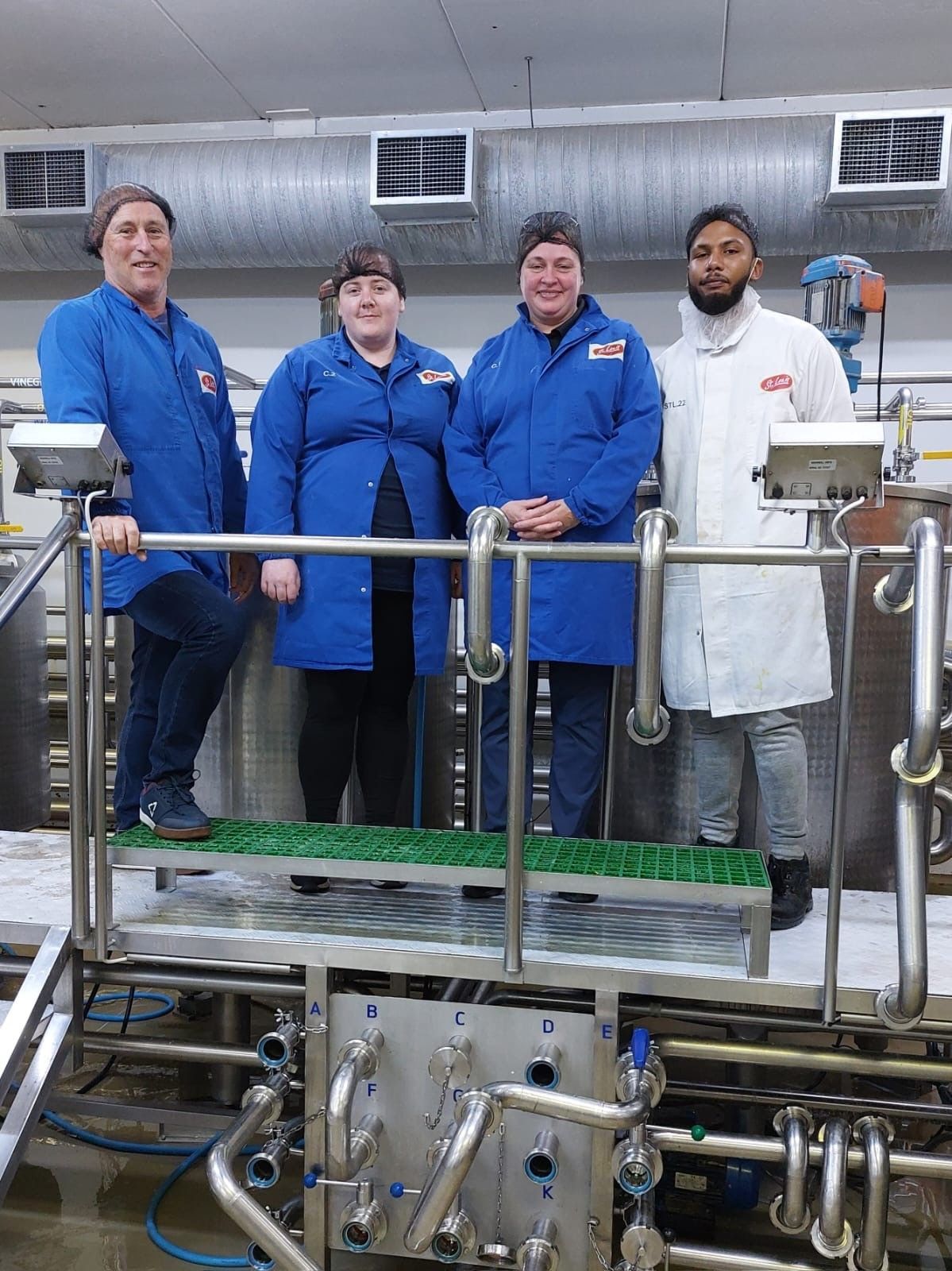 Once we had 'kitted up' for the tour and washed our hands several times, Tai gave us a tour of the factory and talked us through their manufacturing processes. They maintain separate areas for products containing allergens to prevent cross contamination and every surface is wiped down and the floors are washed constantly to prevent bacteria. Every part of the process from cooking to filling to labelling to packing to all have their own designated separate areas with their own designated teams working in them. When we entered the production area, they were cooking with Bird’s Eye chillies and our eyes started to water almost immediately as they was so strong, that was quite the experience and we were somewhat relieved when we moved on so we could see again.